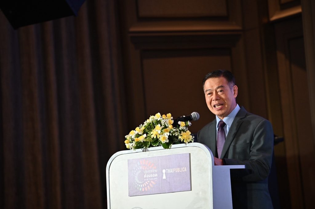 ดร.ศุภวุฒิ สายเชื้อ ประธานกรรมการสำนักงานสภาพัฒนาการเศรษฐกิจและสังคมแห่งชาติ กล่าวว่า เศรษฐกิจไทยไม่ได้ขยายตัวมากนัก สะท้อนให้เห็นจากอัตราการเติบโตของจีดีพีที่ลดลงอย่างต่อเนื่องจากปีค.ศ. 1991-1996 (พ.ศ.2534-2539) ยอดขายของภาคธุรกิจเติบโตเฉลี่ย 13% ขณะที่การเกินดุลงบประมาณเฉลี่ย 2.9% ต่อปี แต่ปัจจุบันเติบโตเพียง 2% และ 3.9% ตามลำดับ นอกจากนี้ธุรกิจ SME เผชิญสถานการณ์ที่แย่กว่าช่วงโควิด-19 จากการปล่อยสินเชื่อของสถาบันการเงินที่ลดต่ำจาก 3 ล้านล้านบาท ในไตรมาส 3/2563 มาที่ 2.8 ล้าน ในปี 2568